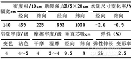 成品面料按照企業(yè)標(biāo)準(zhǔn)進(jìn)行檢驗(yàn),各項(xiàng)指標(biāo)見表2。