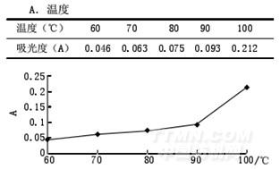 從圖3可以看出,隨著溫度的升高,吸光度顯著升高,當達到100℃時,吸光度達到最高值,考慮到實驗中的實際操作,提取時確定方法為沸煮。
