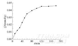 2.2.2Gly-Gly-MIPMs的動(dòng)態(tài)吸附性能動(dòng)態(tài)吸附性能是考察印跡聚合物對(duì)印跡分子的響應(yīng)能力,通常采用測(cè)定其動(dòng)力學(xué)吸附曲線來表征,該曲線反映了吸附量隨時(shí)間的變化。