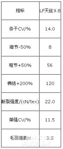 LF天絲9.8成紗質(zhì)量如表6。