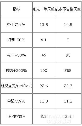 表4 天絲纖維疵點(diǎn)含量
