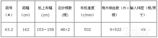 由于該品種毛羽多,吸濕性強,易粘連。為此,在生產(chǎn)中我們采用進口Gamax劍桿織機,選擇適當?shù)纳蠙C參數(shù),同時調(diào)整了車間的相對濕度,使經(jīng)紗保持良好的拉伸,減少落絨。通過各項措施的實施,天絲/棉/T400彈力牛仔布試制非常順利,既保持了布面所特有的風格,也減少了經(jīng)紗斷頭,提高了布機效率。主要工藝如下:
