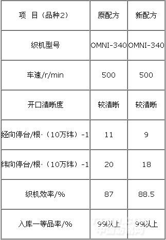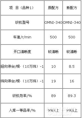 品種1:原配方漿料干重價格:15.15元/kg。百米用漿成本48.10元(15.15×14.7%×21.6=48.10元);新配方漿料干重單價10.98元/kg,百米用漿成本36.29元(10.98×15.3%×21.6=36.29元)。新配方百米用漿成本比原配方百米用漿成本降低11.81元,百米用漿成本降低24.55%較明顯。