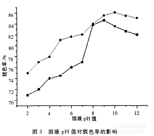 2.3溶液pH值對(duì)脫色率的影響