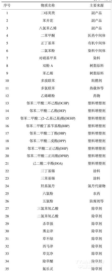 表1 70種環(huán)境激素