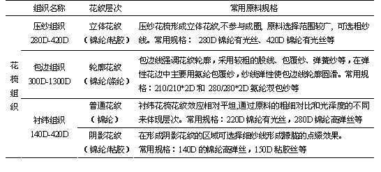 多梳拉舍爾花邊在組織方面有花紋組織和地組織之分,因此在其組織、質(zhì)地上有明顯的“花”、“地”效應區(qū)別。