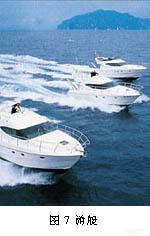 用于船艇制造的多軸向經(jīng)編織物通常以玻璃纖維、碳纖維、芳綸纖維等為原料,同時(shí)結(jié)合新型的成型和復(fù)合技術(shù),這樣形成的產(chǎn)品除了可減少紗線的使用量以及減輕船體重量外,還可以減少合成樹脂的用量、縮短浸漬時(shí)間等??栠~耶馬利莫公司曾聯(lián)合德累斯頓大學(xué)和開姆尼茨Saxon紡織研究所采用玻璃纖維多軸向經(jīng)編織物作為骨架材料,開發(fā)了一艘尺寸為4090mm×730mm×320mm,船體厚度只有2~3mm,重量?jī)H為27kg的輕質(zhì)高強(qiáng)的玻璃鋼船??梢哉f(shuō),用玻璃纖維多軸向經(jīng)編織物生產(chǎn)的船只與其它材質(zhì)船只相比具有更多優(yōu)點(diǎn),它質(zhì)量輕、船速快、節(jié)油、抗碰撞和抗風(fēng)浪性能好、耐腐蝕以及抗老化性好。用強(qiáng)度相同的多軸向經(jīng)編織物替代機(jī)織物生產(chǎn)游艇(圖7),可節(jié)省30%的玻璃纖維,使游艇生產(chǎn)者獲得相當(dāng)顯著的經(jīng)濟(jì)效益[6]。多軸向經(jīng)編織物在船艇制造上的大量應(yīng)用,無(wú)疑給多軸向經(jīng)編增強(qiáng)材料的生產(chǎn)企業(yè)帶來(lái)了無(wú)限的商機(jī)。