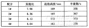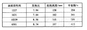 表7各表面活性劑的發(fā)泡指標(biāo)對比