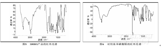 羥基位置上引入異壬酰基。INOBS產品的紅外光譜圖與對羥基苯磺酸鈉的紅外光譜圖分別如圖5和圖6所示。