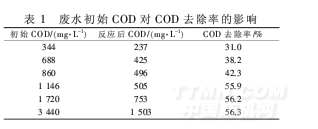 2.1.1廢水初始COD對(duì)COD去除率的影響