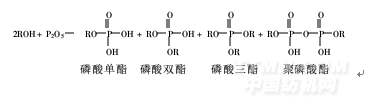 在生成物中,聚磷酸酯在一定條件下可以水解為相應(yīng)的單酯,單酯鹽含有2個(gè)親水基團(tuán),而雙酯鹽只含有1個(gè)親水基團(tuán),故單酯鹽比雙酯鹽的滲透性更好[3]。其水解反應(yīng)式為: