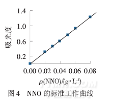 式中A為吸光度,ρ為NNO質(zhì)量濃度,回歸系數(shù)為R2=0.998 8.