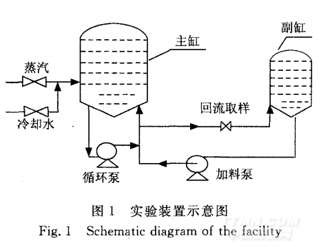 在主缸內(nèi)注入一定量水,并回流20 L左右至副缸 內(nèi),用于溶解染料.稱取所需染料,倒入副缸中,攪拌5 min.再加入所需的硫酸(或氫氧化鈉),一起注入加蓋 的主缸中.室溫下循環(huán)5 min后,取樣,記為0#樣.升 溫到預(yù)定溫度后,加入100 理論量的雙氧水.反應(yīng)開 始計時,定時取樣,記為#樣.取樣前均需先排出管 路中的殘留液,每次取樣量低于500 m L.樣品取出后 立即置人冰水浴中,令其迅速降溫.分別檢測所取樣品 的色度和CODcr。值口 .