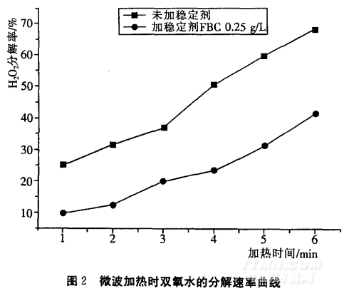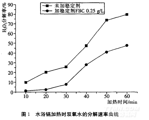 穩(wěn)定劑對雙氧水分解速率的影響見圖1和圖2