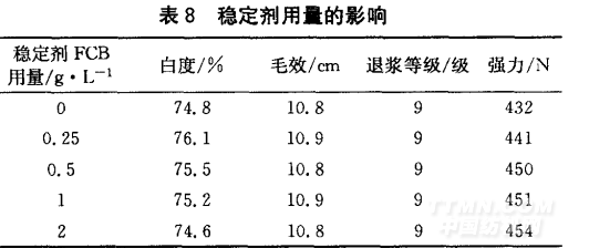 (3)通過實驗得出較為合適的微波前處理工藝:燒 堿15 g/L、過氧化氫10 g/L、穩(wěn)定劑FCB 0.25 g/L、 MRN 5 g/L ,微波中低火加熱5 min。