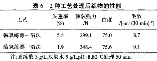 2.2堿氧練漂一浴法與酶氧練漂一浴法對比