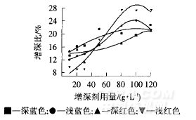 不同色相滌綸織物增深比見圖10.