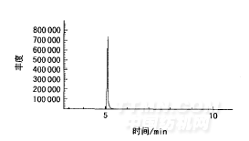 試驗富馬酸二甲酯標準物的CC—MS色譜條件。采用弱極性的DB一5MS色譜柱,測得DMF的特征色譜峰如圖1所示,其保留時間為5.116min。