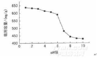 圖3pH值對(duì)吸附容量的影響