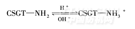 染液pH值對(duì)復(fù)合微球的吸附效果有明顯的影響,這是因?yàn)榻宦?lián)殼聚糖/明膠(CSGT)微球在水溶液中存在下列平衡:
