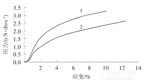 銅離子改性前后海藻酸鈣纖維的應力-應變曲線見圖2.