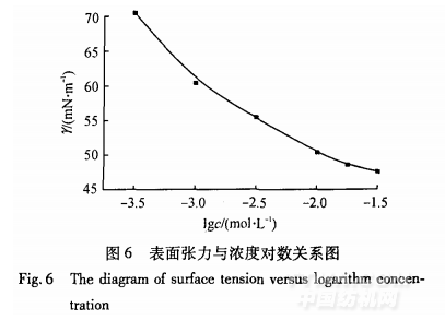將上述分散劑配成不同濃度的溶液,在25℃時測試其表面張力,如圖6所示.