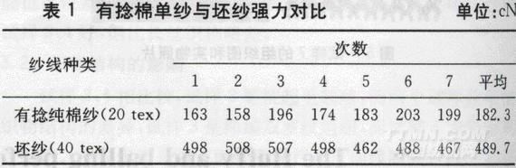 表1 有捻棉單紗與坯紗強力對比 單位:cN