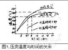 壓燙時(shí)間與溫度是相關(guān)的,提高壓燙溫度可縮短升溫時(shí)間,使熱熔膠在較短時(shí)間內(nèi)達(dá)到膠粘溫度ta。圖7表示膠粘溫度為120~140℃的襯布在不同壓燙溫度時(shí)溫度與時(shí)間關(guān)系。因此在選擇壓燙條件時(shí),我們應(yīng)根據(jù)面料、襯布和壓燙進(jìn)行綜合考慮。例如:面料熱收縮較大時(shí)則壓燙的溫度可略低些,而壓燙時(shí)間適當(dāng)延長(zhǎng),相反情況也一樣。