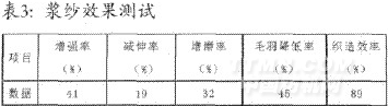 本產(chǎn)品的上漿效果及織造效率見(jiàn)表3。