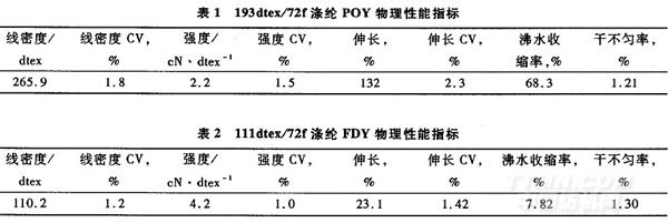 193dtex/72f滌綸POY,其物理性能指標(biāo)見(jiàn)表I。