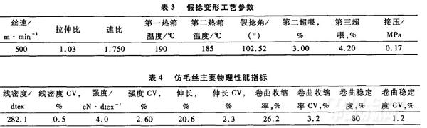 假捻變形工藝參數(shù)見(jiàn)表3。