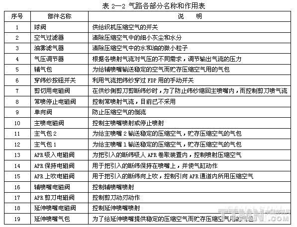 (3)主噴調壓閥:是設定主噴嘴引緯氣流大小的調壓閥。引緯氣流的作用是在輔噴氣流的配合下將緯紗牽引穿越織口完成引緯。