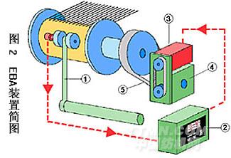 圖 2 為一種 EBA 裝置簡圖,采用伺服放大器和伺服電動機作為驅動裝置,用于線性送經場合。表面感測羅拉 1 測量實際送經速度,控制面板 2可 編制生產工藝參數、顯示并控制測量值、控制送經速度,伺服電機 3經減速齒輪單元4減速后,由同步皮帶5驅動經軸。