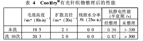 4.3 經(jīng)吸濕排汗整理后,織物具有優(yōu)良的抗靜電性能,極大地提高了穿著舒適性。