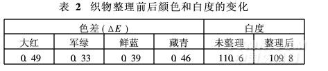 根據(jù)國(guó)際照明協(xié)會(huì)CIE Lab色空間測(cè)定的色差值ΔE的大小判斷,當(dāng)ΔE小于0.5時(shí),用人的肉眼難以辨別出顏色的差異。表2中,四種染色織物的色差均<0.5,表明染色織物經(jīng)吸濕排汗整理對(duì)顏色的影響較小。從整理前后織物的白度值看,吸濕排汗整理劑DM-3402用于白色織物幾乎無(wú)影響。