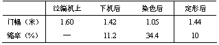 由于網(wǎng)眼織物的橫向縮率較大,特別在染色后,門幅減小了34.4%左右。染色、脫水后,上樹(shù)脂、短環(huán)預(yù)烘、焙烘均在該門幅下進(jìn)行,然而定形時(shí)門幅約擴(kuò)大0.4米,這對(duì)樹(shù)脂的拉力過(guò)大,將導(dǎo)致樹(shù)脂膜斷裂。因此我們應(yīng)該在染色前增加一次預(yù)定形,使其幅寬接近定形幅寬。