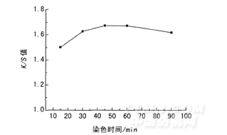 圖4 染色時(shí)間與織物得色量K/S值的關(guān)系