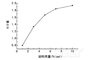 圖6 染料用量與織物得色量K/S值的關(guān)系