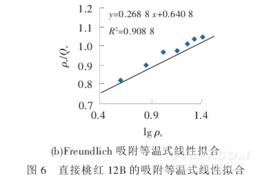 (2)在試驗所研究的質(zhì)量濃度范圍內(nèi),直接桃紅12B在雜化膜上的吸附用2 種等溫式線性擬合的相關(guān)系數(shù)都較高,其中Langmuir 吸附等溫線更加適合描述直接桃紅12B 在雜化膜上的吸附行為.