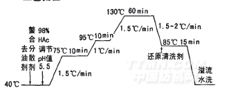 工藝流程 配缸滌綸分散染料染色漂底活性染料套棉后處理脫水烘干熱定形成品檢驗拉絨