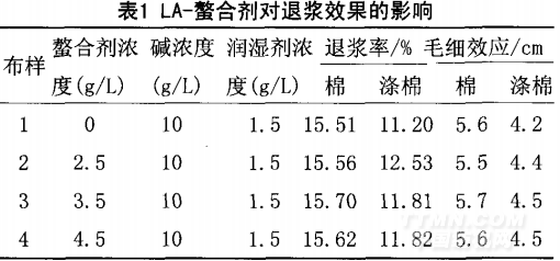 3.1 LA-螯合劑對退漿的影響