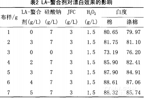 3.2 LA-螯合劑對漂白的影響