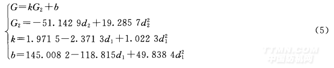 綜上可得,G值與活性藍(lán)染料濃度d 1及活性紅染料濃度d2的關(guān)系表達(dá)式為