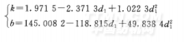 式中,k和b為d1 的函數(shù)。