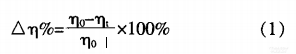 式(1)中,110、分別為打漿30min的粘度和漿料避光封存thr的粘度用織物拔白印花前后(未漂白)的拉伸斷裂強度變化百分比△η%表示織物強損程度: