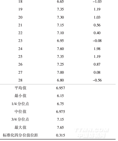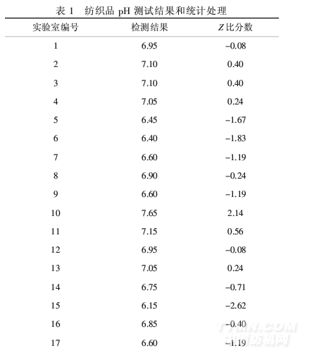 經(jīng)過分析各實(shí)驗(yàn)室反饋的原始記錄資料,發(fā)現(xiàn)在試驗(yàn)中存在以下問題:(1)GB/T 7573-2002中要求每個(gè)試樣的質(zhì)量為(2±0.05)g,有3家實(shí)驗(yàn)室在原始記錄中顯示的試樣質(zhì)量精度不夠;(2)蒸餾水的pH和測(cè)試溫度是影響測(cè)試結(jié)果的重要因素,標(biāo)準(zhǔn)要求測(cè)試溫度為(20~25)℃,蒸餾水pH為5.0~6.5,但仍有2家實(shí)驗(yàn)室未提供測(cè)試溫度和測(cè)試蒸餾水的pH;(3)有2家實(shí)驗(yàn)室的檢測(cè)結(jié)果精確到0.1,不符合標(biāo)準(zhǔn)要求的最終結(jié)果精確到0.05,對(duì)其重新修約后參與統(tǒng)計(jì);(4)3家實(shí)驗(yàn)室未按要求填寫記錄表,只給出最終檢測(cè)數(shù)值,而未提供平行試驗(yàn)的數(shù)據(jù).