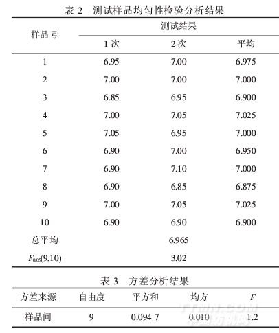 實(shí)驗(yàn)室編號(hào)檢測(cè)結(jié)果Z比分?jǐn)?shù)算所得的F值為1.2.F<F0.05(9,10),表明在0.05顯著