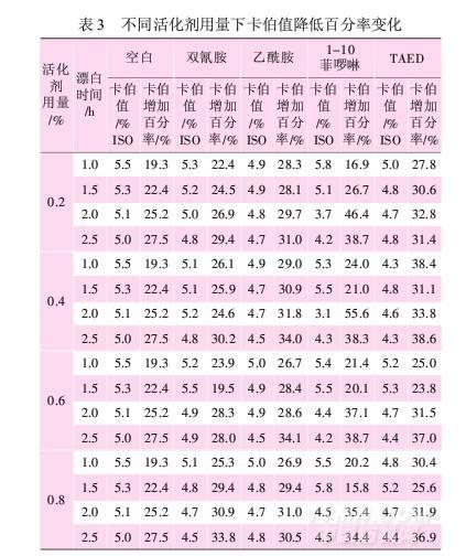 2.3活化劑對卡伯值降低的影響