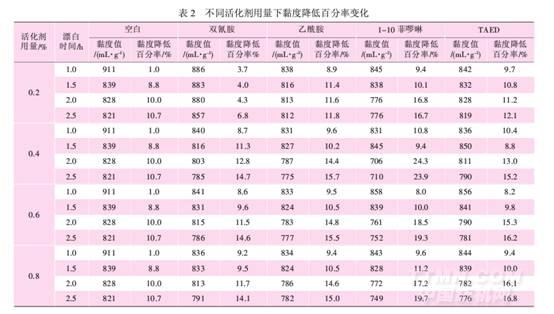 2.2活化劑對黏度降低的影響