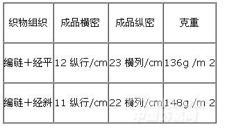編織采用最為常用的雙梳經(jīng)編組織:編鏈與經(jīng)平或變化經(jīng)平組織。(1) 組織: